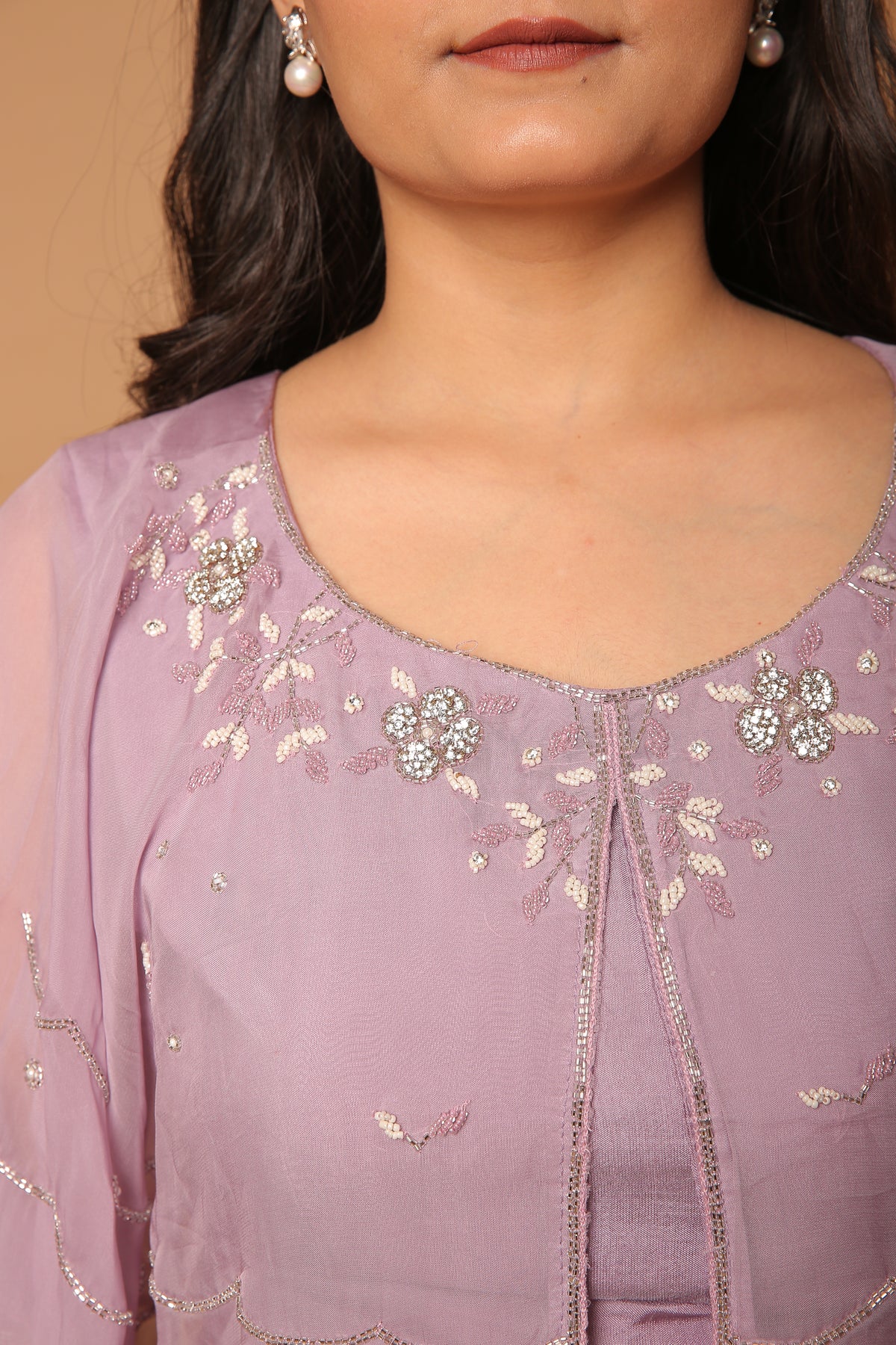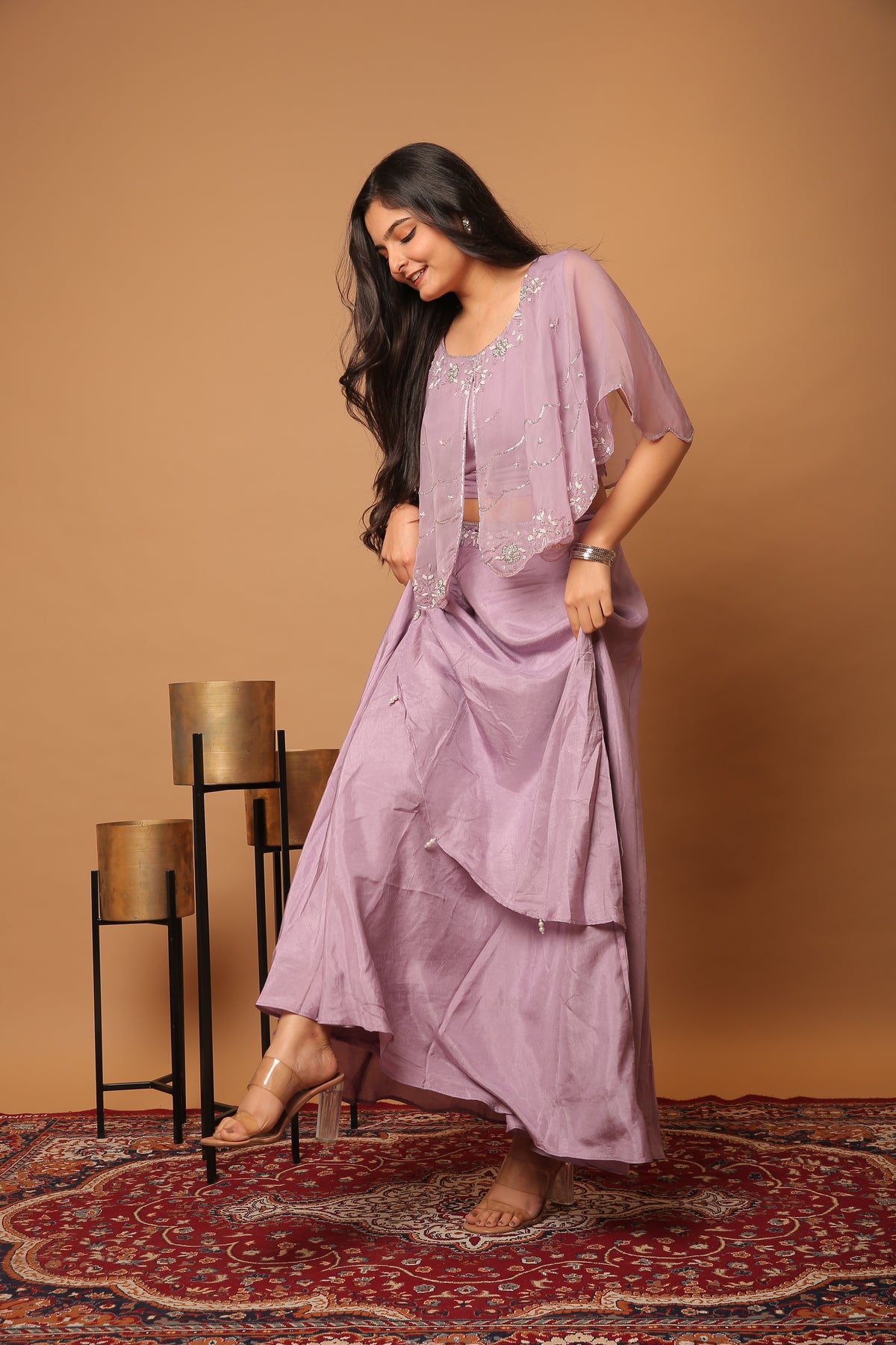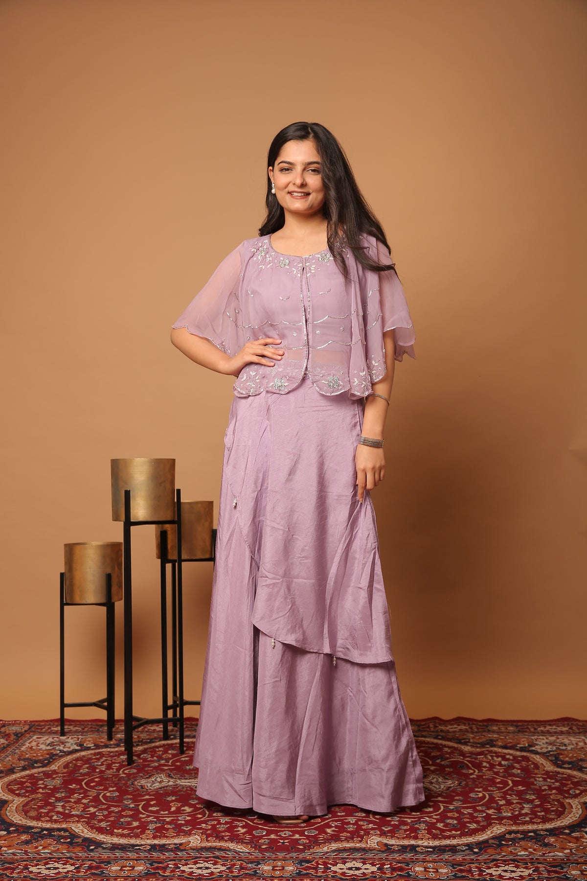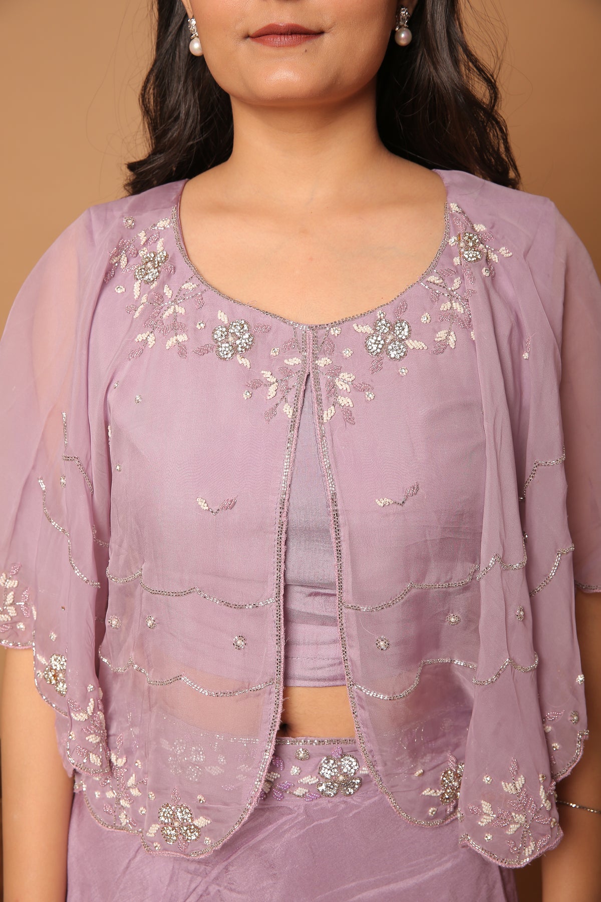 Unleash your inner fashion icon with our exquisite collection of organaza double-layered skirts and cape blouses! Discover the perfect outfit for every occasion, expertly crafted with cutdana, resham and pearl, leaving hearts enchanted in its wake.