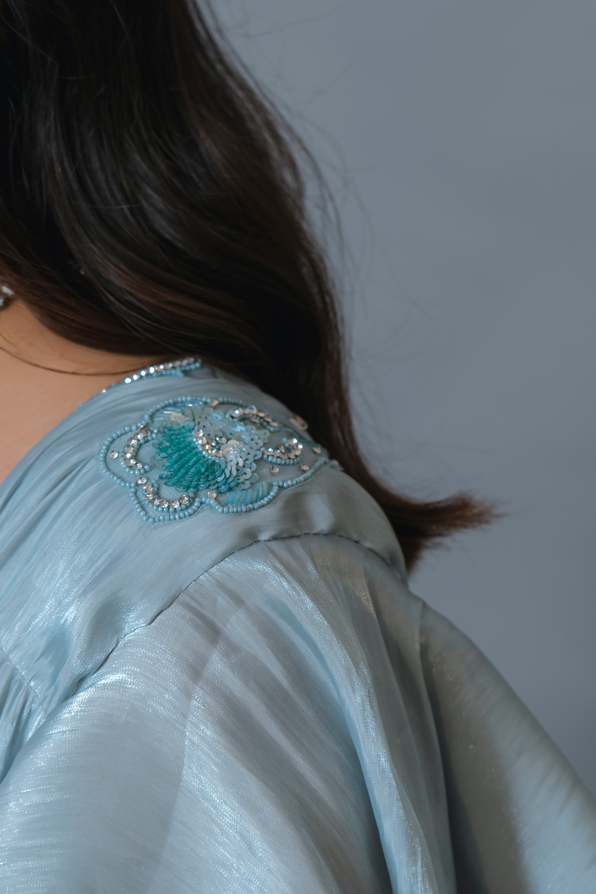 Work Details:Handwork of iceblue and silver cutdana, sequin and beads