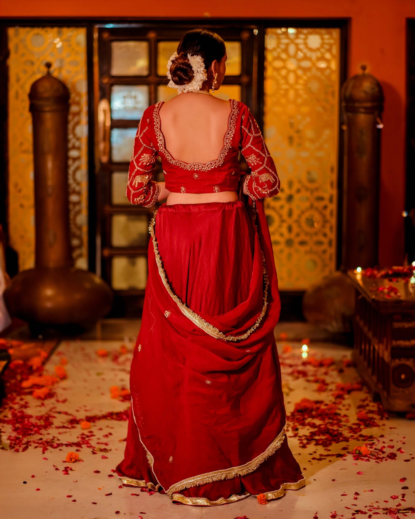 Material: The blouse is in Muslin fabric,lehenga in modal satin fabric and dupatta in organza silk.