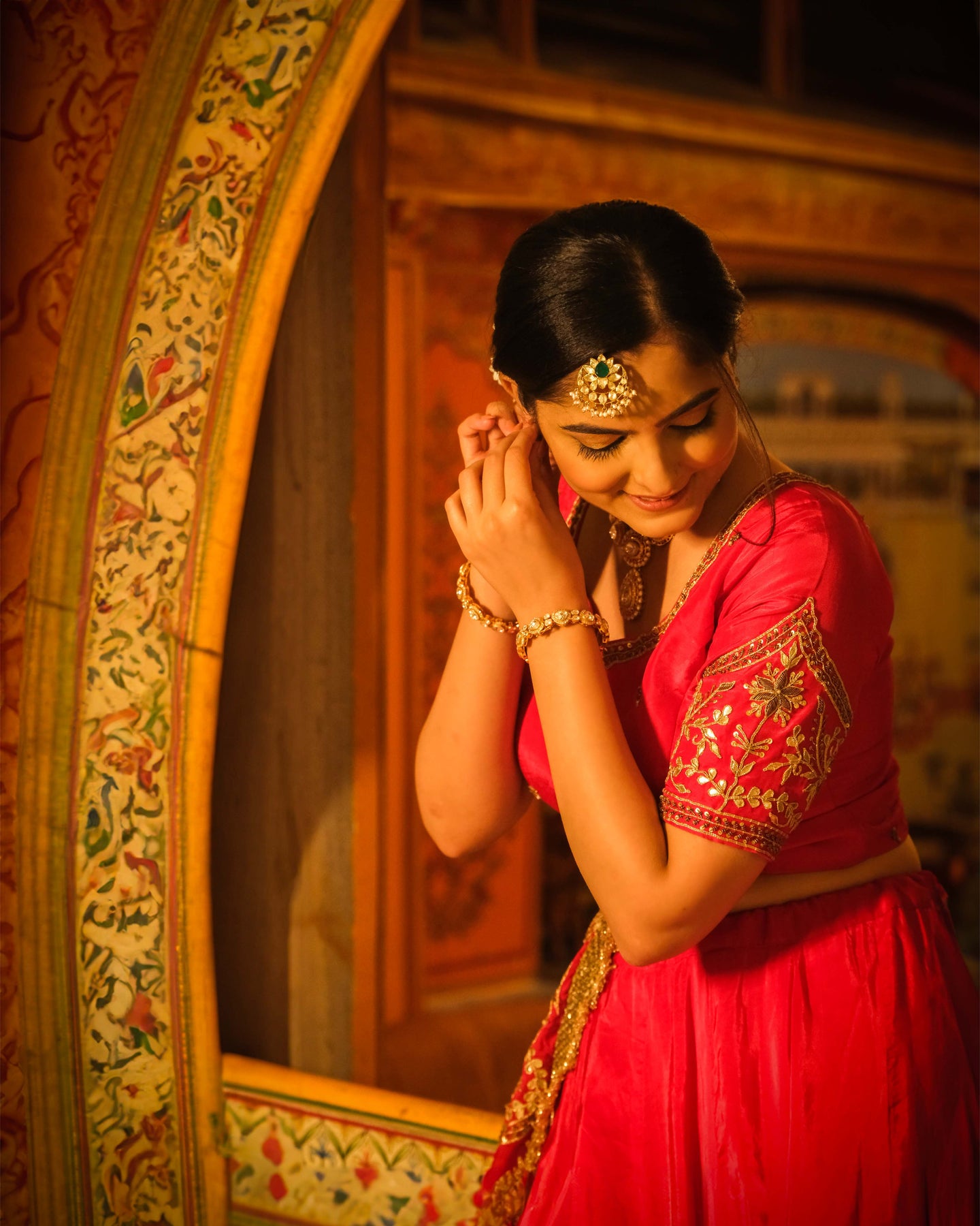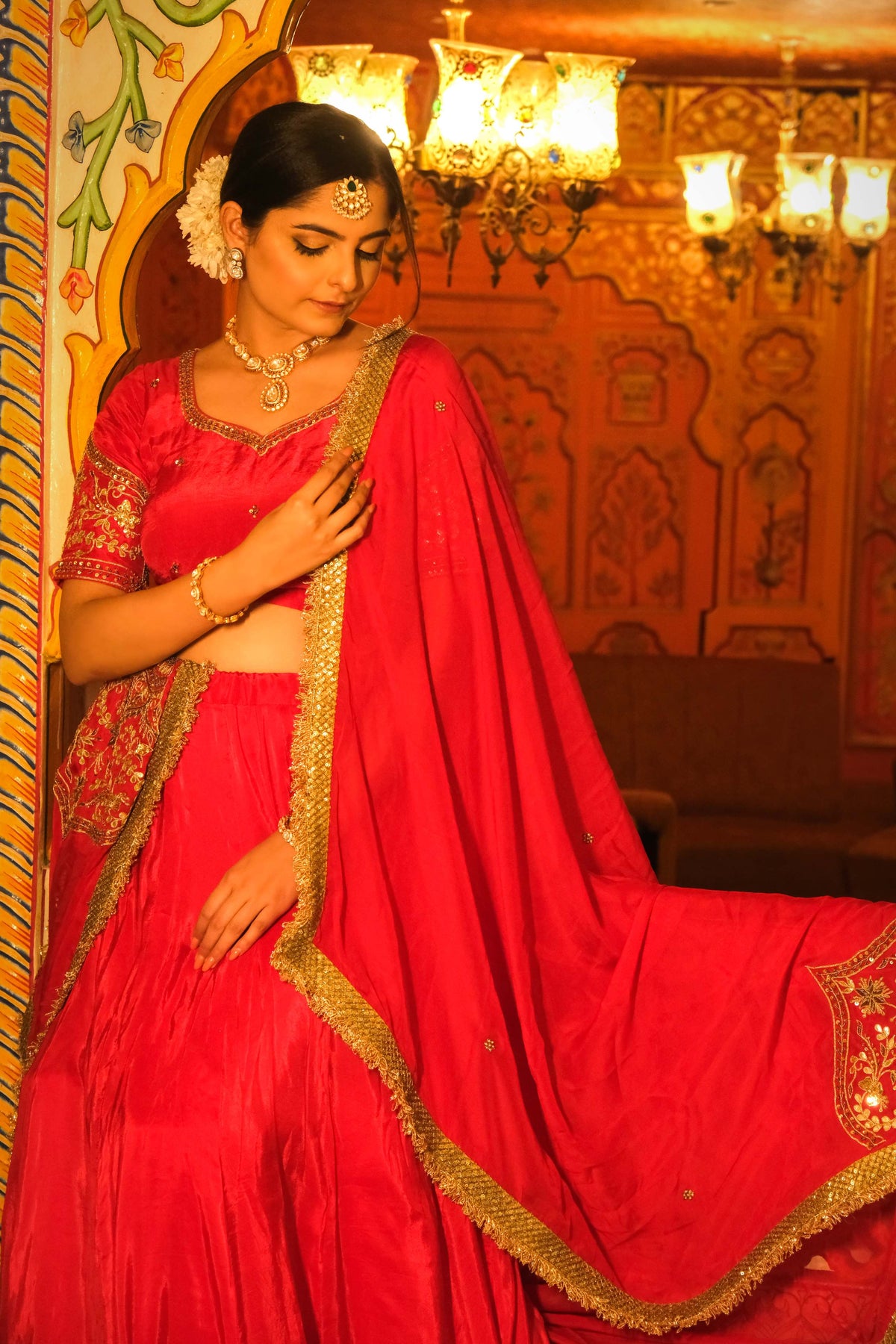 Red Bridal sequins lehenga