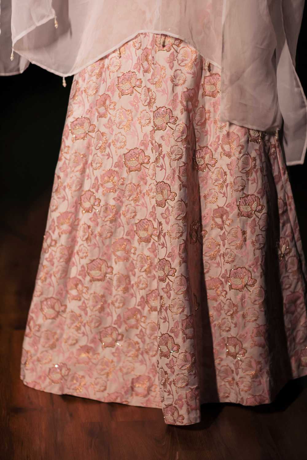 Material: Lehenga and bustier is in soft banarsi brocade fabric. Kaaftan is in organza silk fabric.