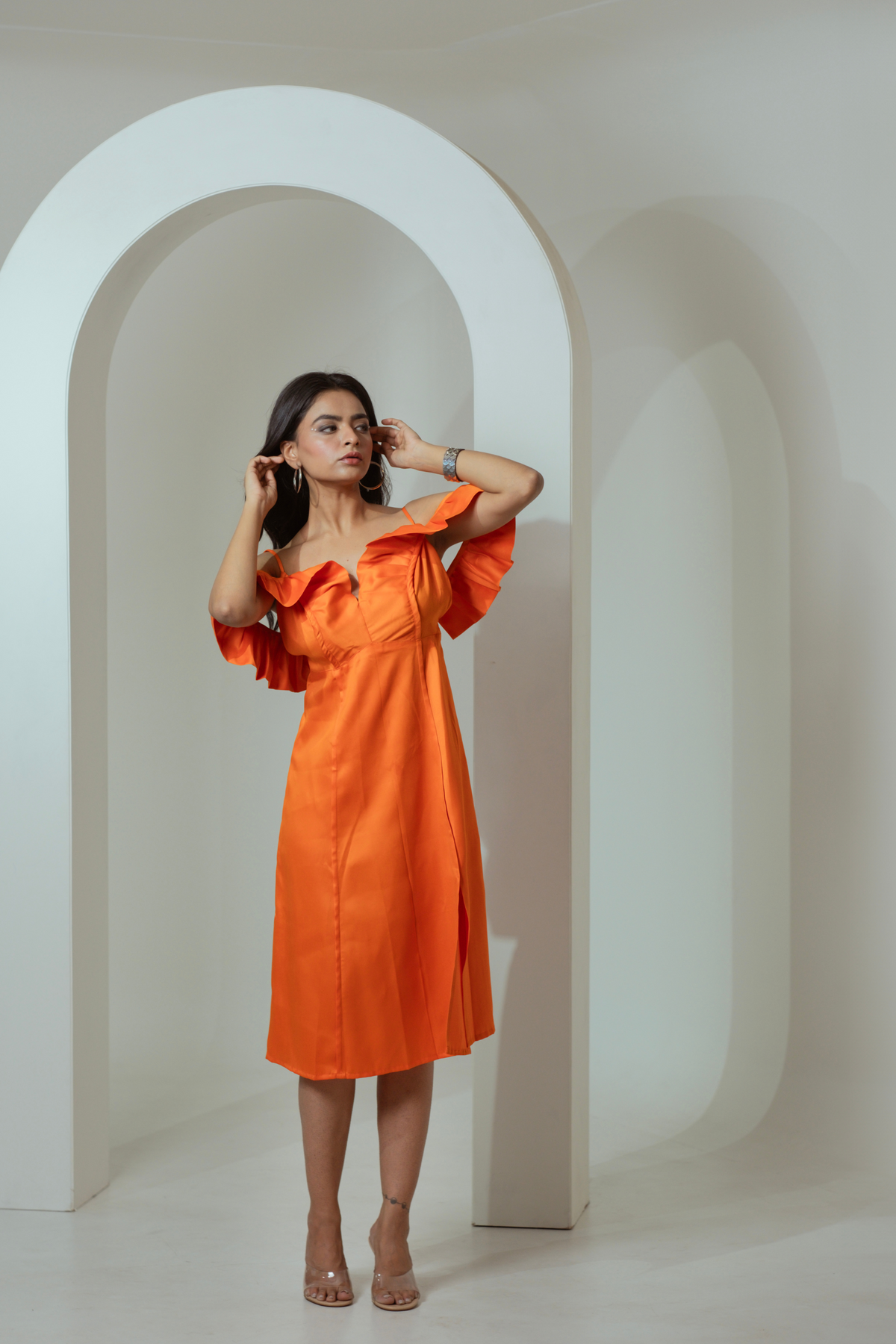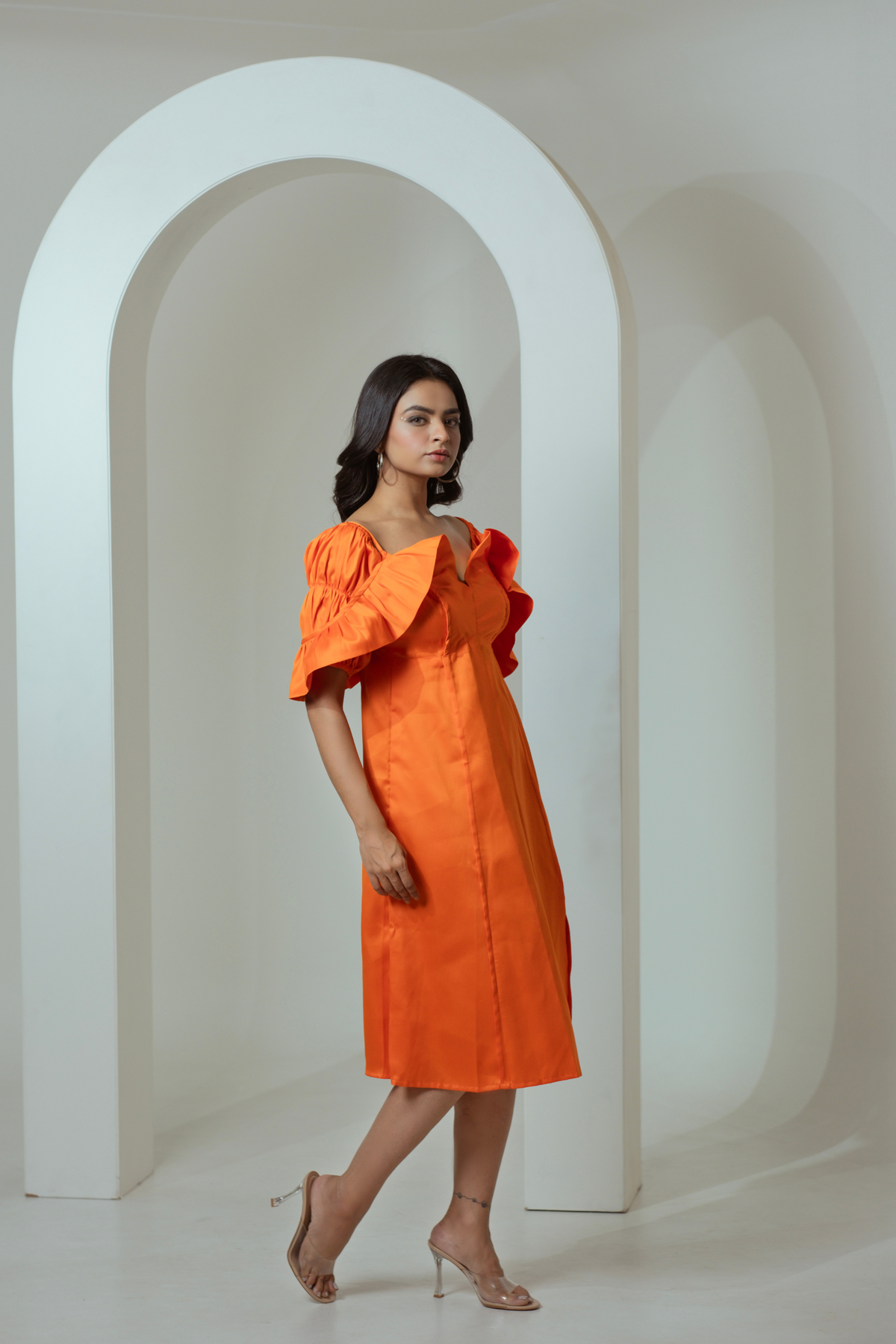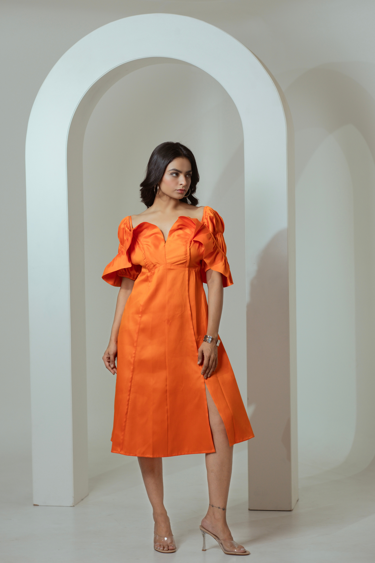 this dress is made on italian silk cotton fabric with a plunge V neckline. It has pin tucked panels at shoulders. This dress comes with detachable sleeves and a slit on the side of the dress.