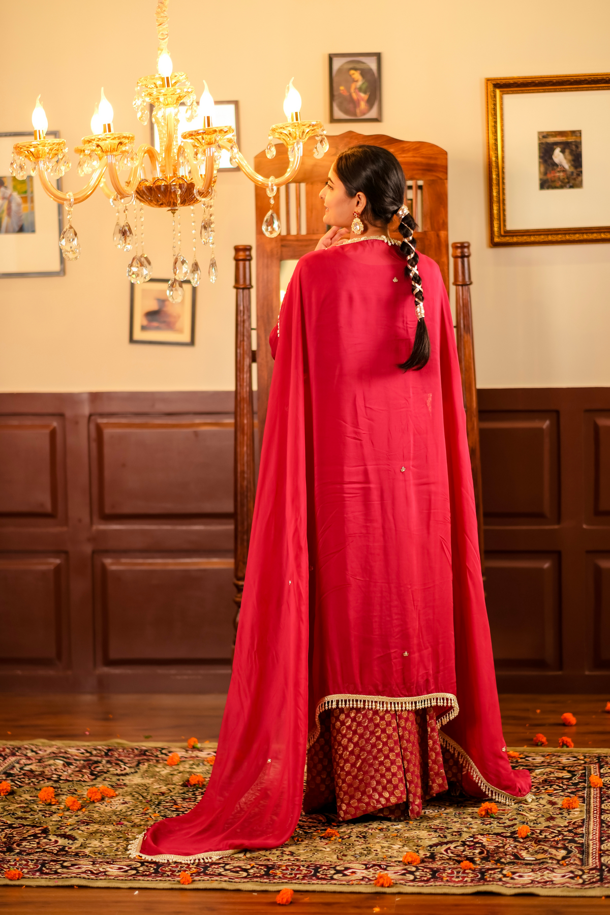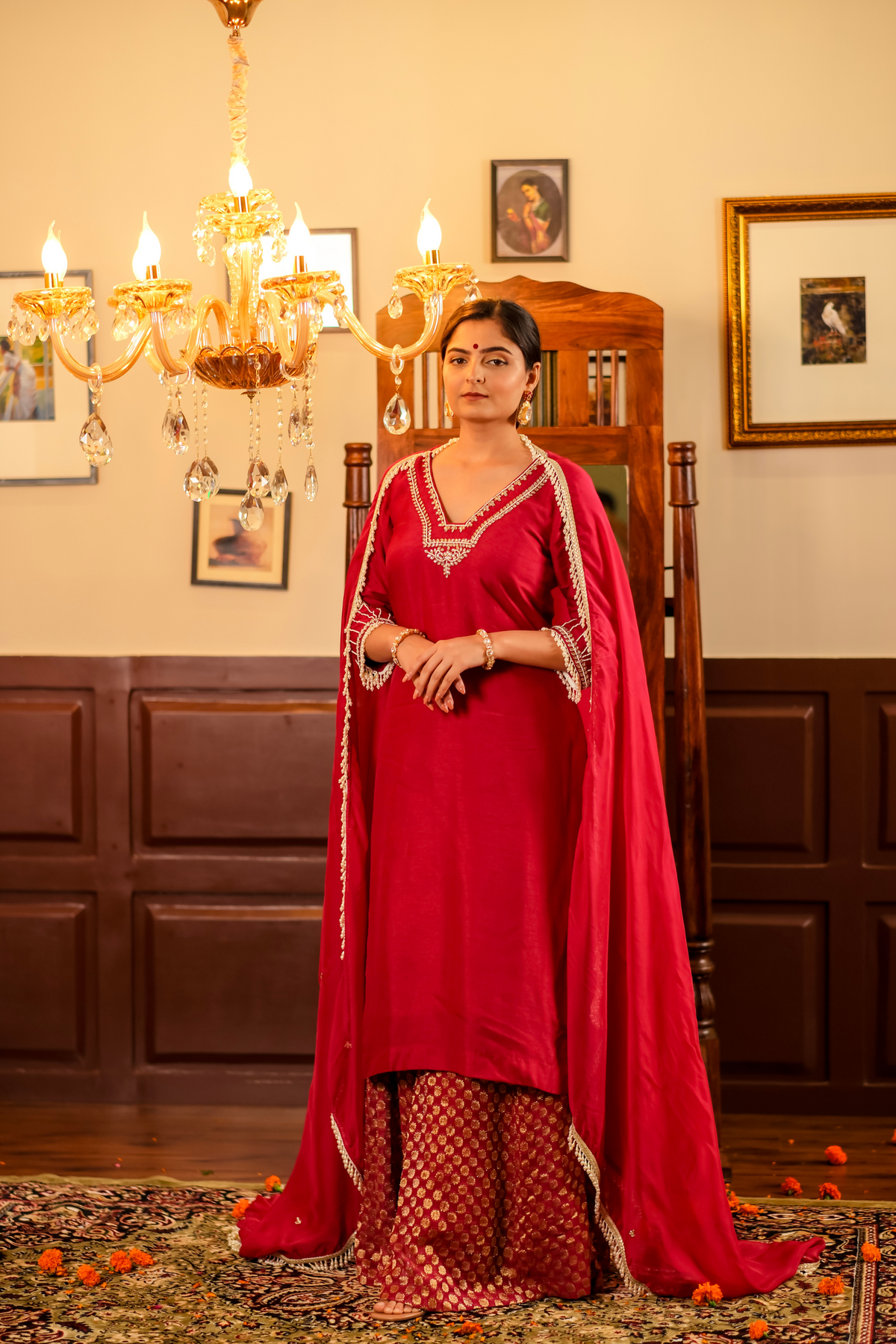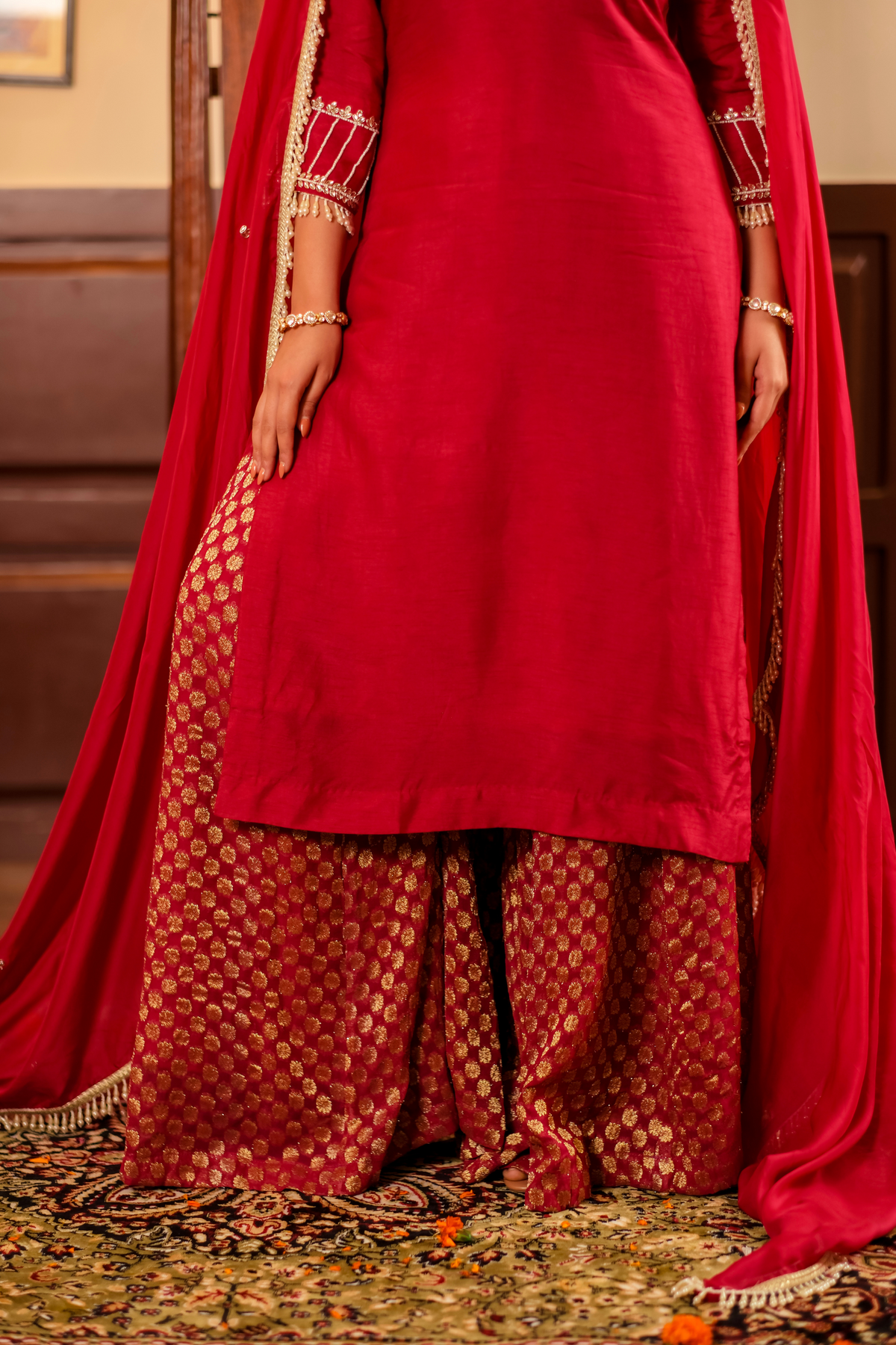 Material: The kurta is in muslin silk fabric with georgette banarsi plazo and organza silk dupatta